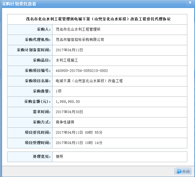 (一)采購人:茂名市北山水利工程管理所 | 地址:茂名市迎賓路100號大院 |