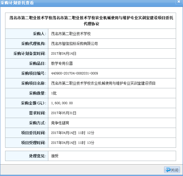 茂名市第二職業技術學校農業機械使用 與維護專業實訓室建設項目 |