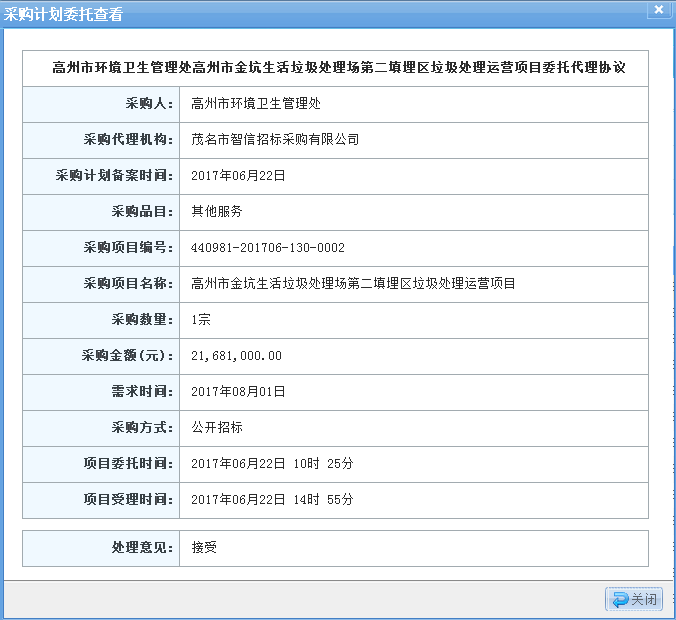 茂名市智信招標采購有限公司 受 高州市環境衛生管理處的委托,對 高州市金坑生活垃圾處理場第二填埋區垃圾處理運營項目 進行公開招標采購,歡迎符合資格條件的供應商投標。