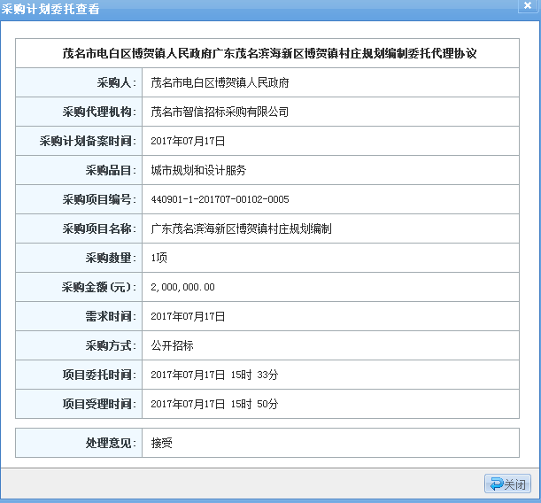 茂名市智信招標采購有限公司 受 茂名市電白區博賀鎮人民政府的委托,對 廣東茂名濱海新區博賀鎮村莊規劃編制 進行公開招標采購,歡迎符合資格條件的供應商投標。