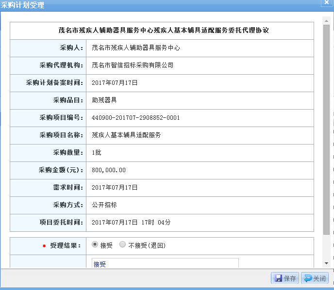 一、采購項目編號:440900-201707-2908852-0001