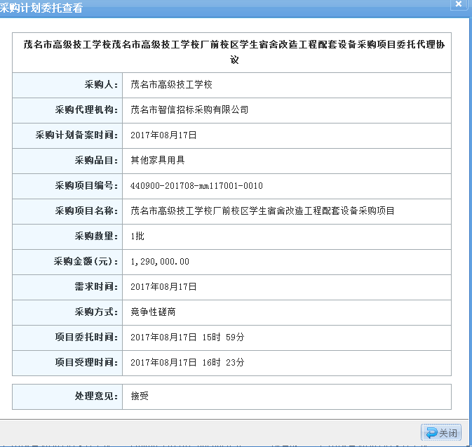 茂名市高級技工學(xué)校廠前校區(qū)學(xué)生宿舍改造工程配套設(shè)備采購項(xiàng)目 |