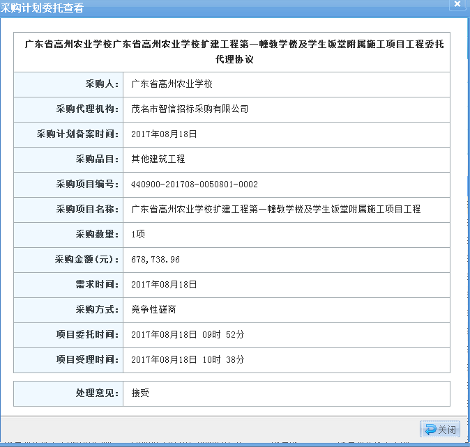 一、采購項目編號:440900-201708-0050801-0002