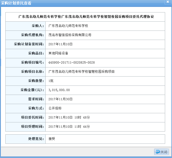 廣東茂名幼兒師范??茖W校智慧校園采購項目 |