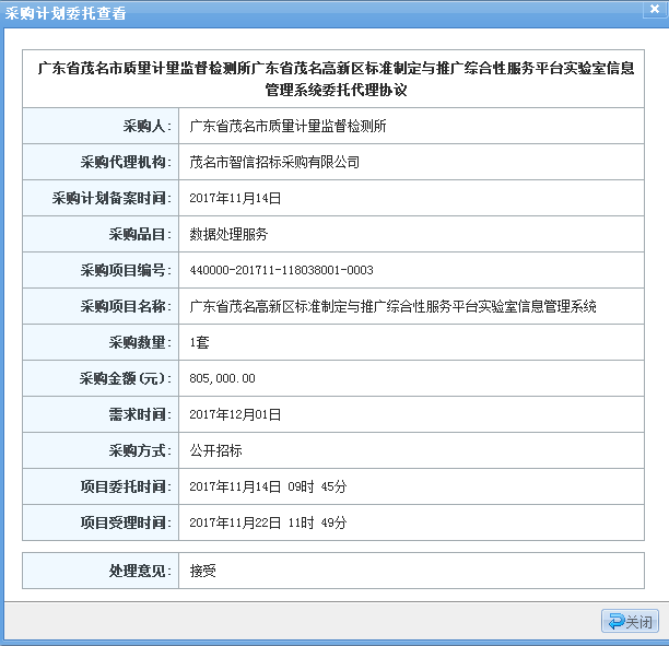 茂名市智信招標采購有限公司 受 廣東省茂名市質量計量監督檢測所的委托,對 廣東省茂名高新區標準制定與推廣綜合性服務平臺實驗室信息管理系統 進行公開招標采購,歡迎符合資格條件的供應商投標。