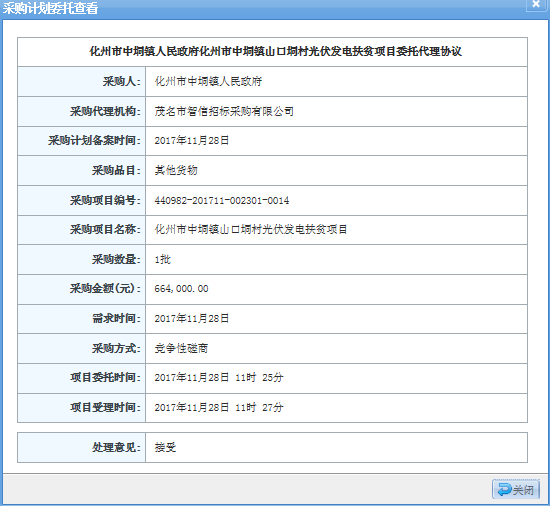 二、采購項目名稱:化州市中垌鎮山口垌村光伏發電扶貧項目