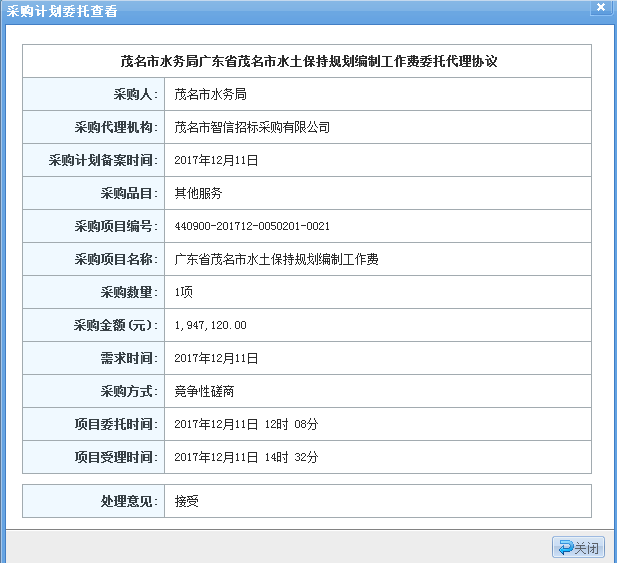 二、采購項目名稱:廣東省茂名市水土保持規劃編制工作費