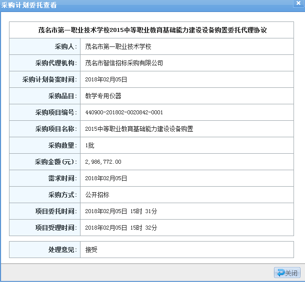 茂名市智信招標采購有限公司 受 茂名市第一職業技術學校的委托,對 2015中等職業教育基礎能力建設設備購置 進行公開招標采購,歡迎符合資格條件的供應商投標。