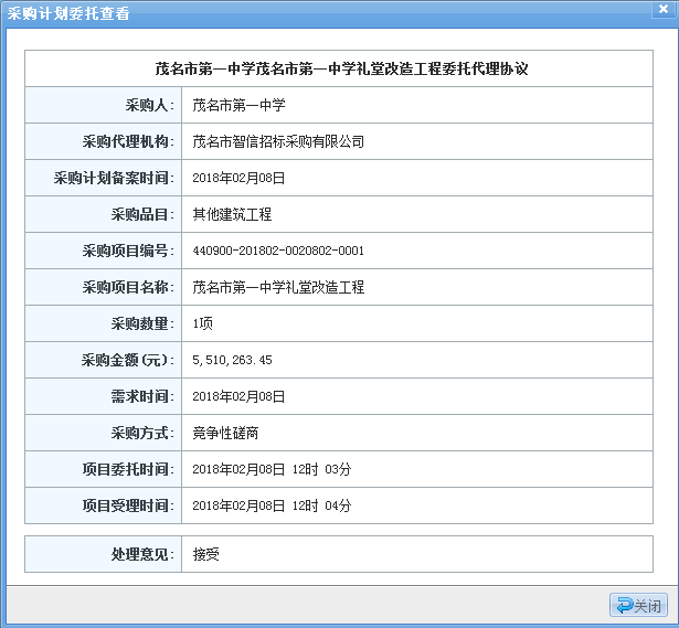 一、采購項目編號:440900-201802-0020802-0001