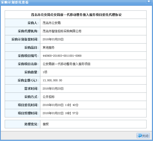 茂名市智信招標采購有限公司 受 茂名市公安局的委托,對 公安局新一代移動警務(wù)接入服務(wù)項目 進行公開招標采購,歡迎符合資格條件的供應(yīng)商投標。
